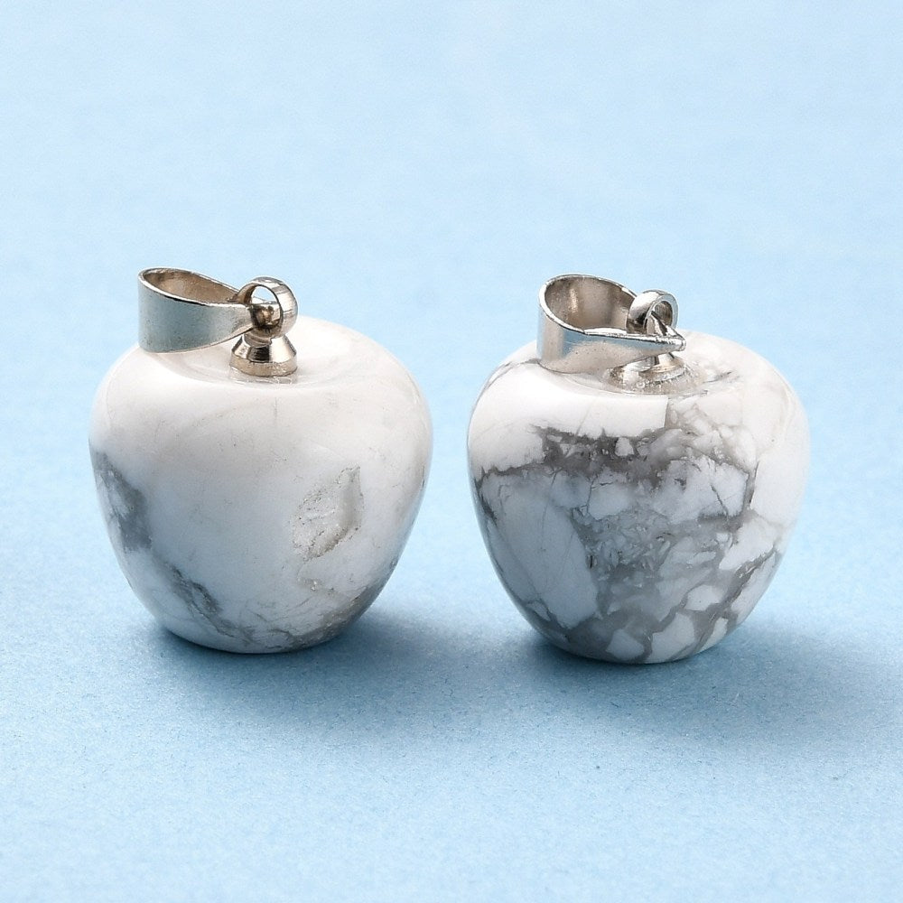 Pendentifs howlite naturel, en laiton platine, pomme, 14~15x14x14mm, Trou: 6x3mm