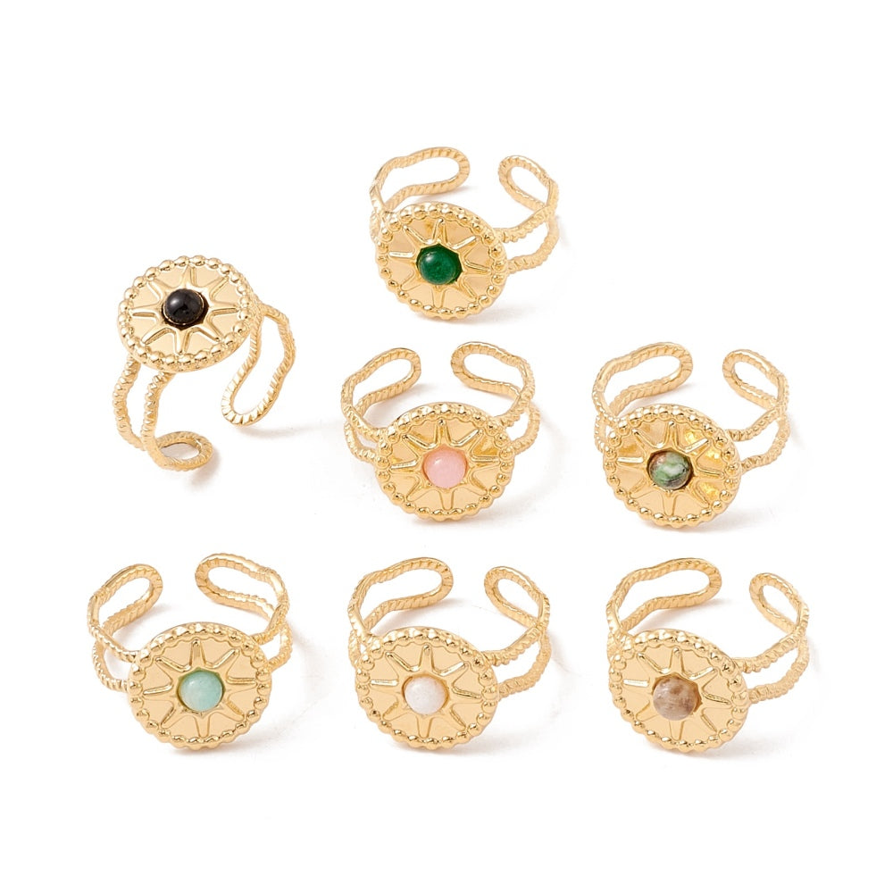 Cette bague en acier inoxydable Whitesun est ornée d'une manchette stylisée avec un plateau en forme de soleil et une pierre naturelle au centre. Un bijou élégant et durable qui offre une belle touche à n'importe quelle tenue.