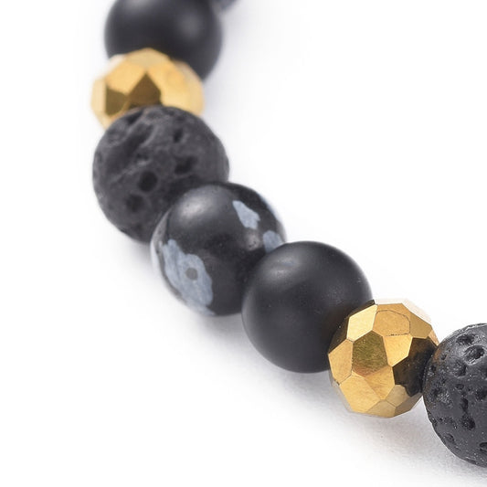 Bracelet élastique en pierre de lave, obsidienne flocon de neige et agate noire