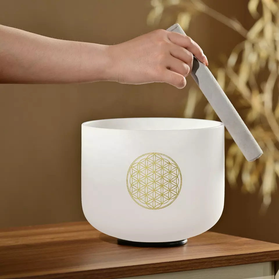 Bol en cristal de roche, fabrication de très belle qualité avec un note à la fréquence 432 htz.